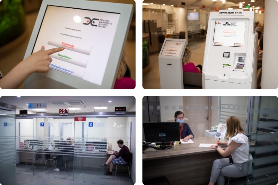 Using the payment terminal (self-service) you can pay by payment card – this is the safest and the most convenient payment method, if you do not need the invoice or you are paying using the private health insurance policy.
